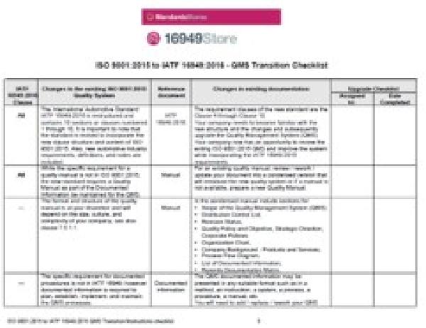 The International Automotive Standard IATF 16949:2016 is restructured andcontains 10 sections or clauses numbered 1 through 10. It is important to note that the standard is revised to incorporate the new clause structure and content of ISO 9001:2015. Also, new automotive industry requirements, definitions, and notes are included.